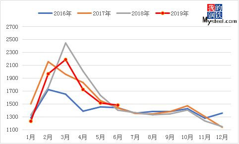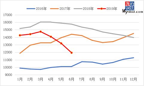 另外,對(duì)于各品種來說,長(zhǎng)材的消費(fèi)依舊強(qiáng)勁,板材的造船和汽車行業(yè)都同比下滑的情況下,使得整個(gè)板材的消費(fèi)進(jìn)入低谷期。那么對(duì)于下半年的價(jià)格走勢(shì)依然可能是長(zhǎng)強(qiáng)板弱的趨勢(shì)。